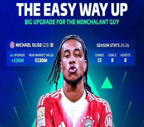 暴涨3000万欧!奥利塞最新身价达到1.3亿欧,为德甲第二高